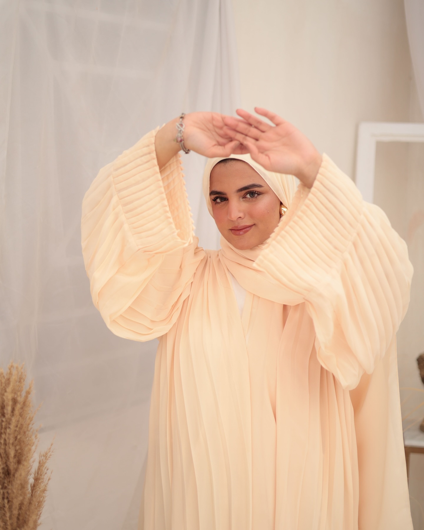 If you’re looking for a neutral abayah that’s classy and chic then this is the one for you. Made from a stunning pleated chiffon fabric with beautiful details on the sleeves, this is the ultimate glam abayah!