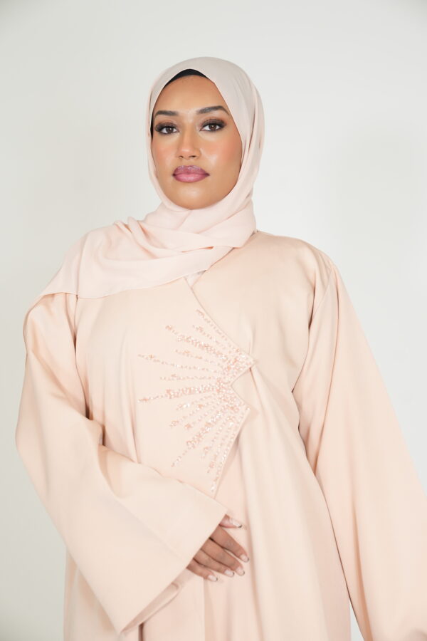 Made from the most luxurious fabric, this piece is truly one of a kind. The stunning embellishment on this abayah will definitely add that touch of glam to your look!